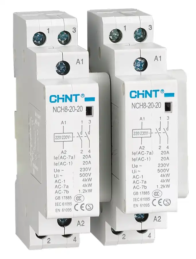 NCH8 serisi sessiz kontaktör, 2 kutuplu, 25 amper kapasiteye sahip olup 1NA+1NK (bir normalde açık ve bir normalde kapalı) kontak yapısıyla elektrik devrelerinde sessiz ve verimli anahtarlama sağlar. 220-230V AC bobin gerilimi sayesinde endüstriyel otomasyon ve enerji kontrol sistemlerinde dayanıklı, uzun ömürlü ve yüksek performanslı kullanım sunar. Kompakt tasarımı kolay montaj ve geniş uygulama alanı avantajı sağlar.