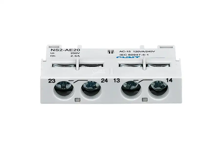 NS-AE20, 2 Normalde Açık (2NA) kontak kombinasyonuna sahiptir. Bu kontaklar sayesinde, şalterin kapalı (motor devrede) konumdayken iki ayrı sinyal devresini veya alarm sistemini aynı anda tetikleyebilirsiniz. Örneğin, bir kontağı bir sinyal lambası için, diğerini ise merkezi bir kontrol paneline durum bilgisi göndermek için kullanabilirsiniz. Bu konfigürasyon, özellikle şalterin aktif olduğunu birden fazla noktadan izlemek veya iki farklı sistemi bilgilendirmek gereken uygulamalar için idealdir.