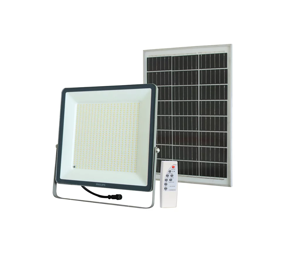 Aydınlatma armatürüne yerleşik lityum ferro fosfat pil, bölünerek katlanan güneş paneli, uzaktan kumanda ve kurulum aksesuarlarına sahip güneş enerjili projektör "Kendin Yap" kiti. IP 66, IK 07, Sağlamlık ve uzun ömür için çekme alüminyum yapı.